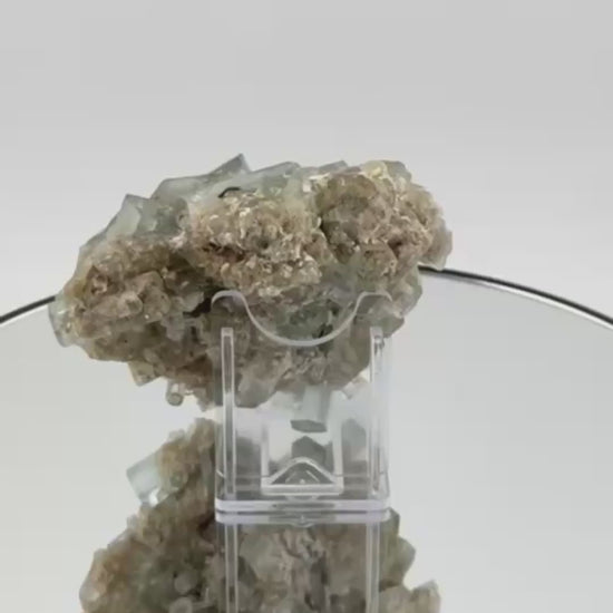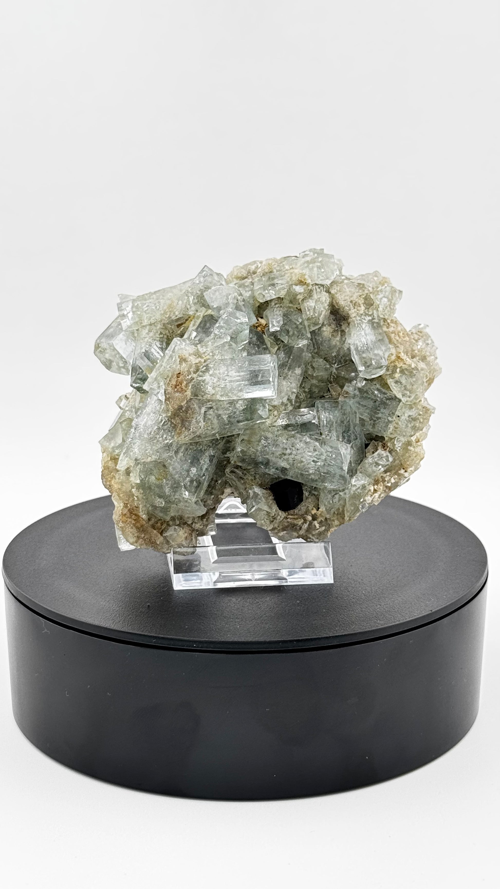 Das Mineral wird auf einem Acrylglas-Ständer präsentiert, der die schwimmende Formation optimal zur Geltung bringt und eine Rundum-Betrachtung ermöglicht.