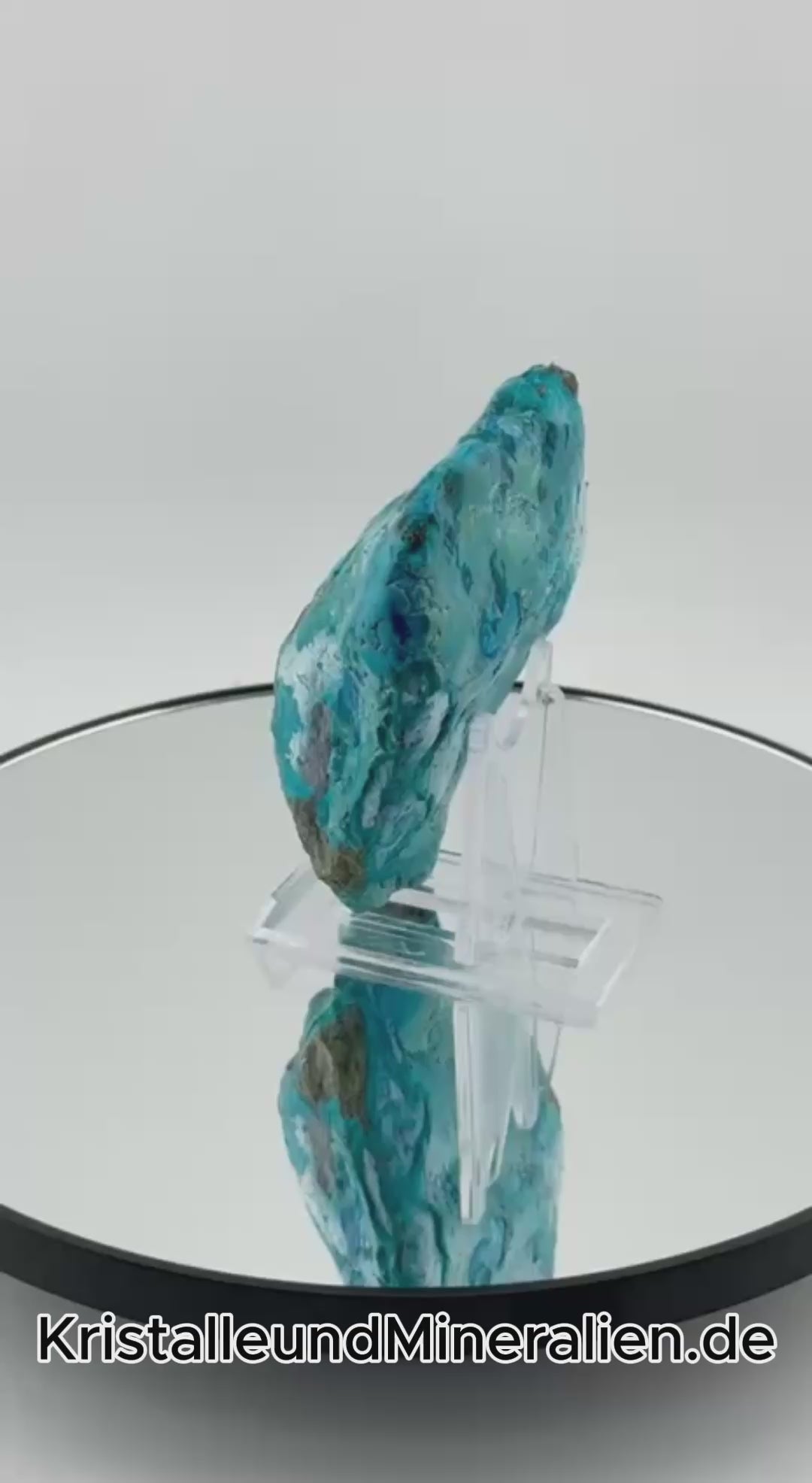 Die leuchtende türkisblaue Farbe entsteht durch Kupferoxidation in Verbindung mit Kieselsäure. Kongolesischer Chrysokoll ist weltweit für seine außergewöhnliche Farbsättigung bekannt – intensiver als Vorkommen aus Peru oder den USA. Die Farbpalette reicht von hellem Aquamarin bis zu tiefem Azurblau.